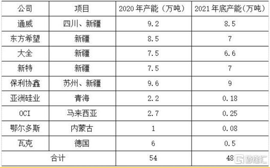 全球主要多晶硅企業(yè)產(chǎn)能統(tǒng)計(jì)
