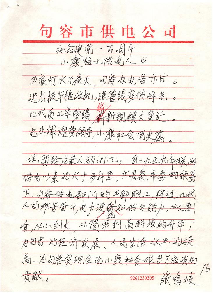 原句容供電局黨委書記,現(xiàn)如今已84歲高齡的老黨員張鳴岐同志就受此熏陶,利用退休后的空余時間,認真專研學習唐詩宋詞。他熟讀詩詞曲賦,通曉古今大事,縱覽時事變局,先后創(chuàng)作了200余首詩詞,并匯編成選集2冊。值此建黨百年之際,張鳴岐同志用自己最近創(chuàng)作的詩詞,匯編成第3冊,向黨的百年華誕獻禮!這也是一名老黨員對黨致以最崇高的敬意!