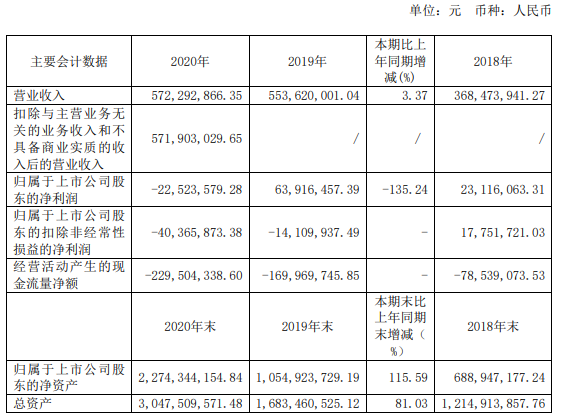 億華通2020年年報主要會計數據