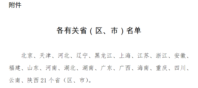 附件:各有關(guān)省(區(qū)、市)名單