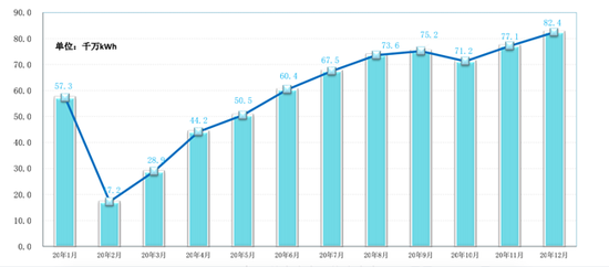 2020年全國(guó)公共充電樁充電量走勢(shì)圖