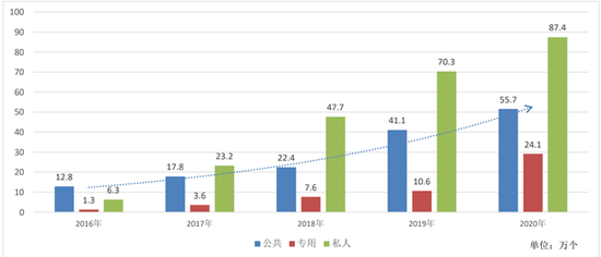 本月,中國(guó)電動(dòng)汽車(chē)充電基礎(chǔ)設(shè)施促進(jìn)聯(lián)盟發(fā)布的《2020-2021年度中國(guó)充電基礎(chǔ)設(shè)施發(fā)展報(bào)告》(以下簡(jiǎn)稱(chēng)《發(fā)展報(bào)告》)顯示,2020年,我國(guó)充電基礎(chǔ)設(shè)施建設(shè)規(guī)模持續(xù)高速增長(zhǎng),截至2020年底,公共充電樁保有量數(shù)量79.8萬(wàn)個(gè),私人充電樁數(shù)量87.4萬(wàn)個(gè),建設(shè)規(guī)模持續(xù)保持世界首位。