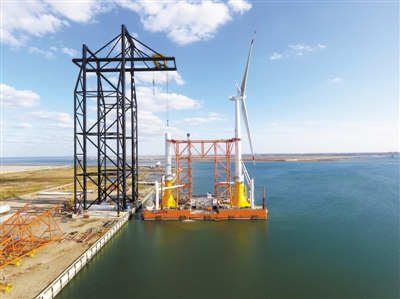 “傳統的海上風機安裝建造,一般是由運輸船舶將零部件運輸到海上建造的位置,分部施工安裝,完成整機調試。而這樣一套安裝流程,至少需要5天才能完成,有時候遇到強臺風,甚至時間更長。”王海軍介紹,“海上施工窗口期十分寶貴,為了提高海上風機安裝效率,需要把組裝好的海上風機直接運送到位。”