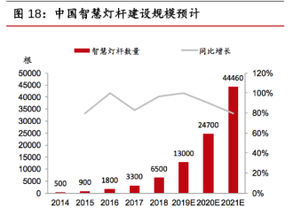 根據OFweek,川財證券研究所的數據顯示,從2014年到2021,我國智慧燈桿的數量都在逐年上漲,保守估計2021年我國智慧燈桿數量達到44460根。