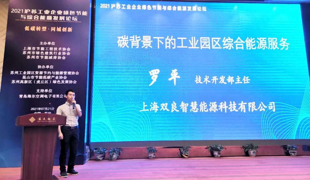 在本次會議上,上海雙良智慧能源科技有限公司技術開發部主任羅平做了“雙碳背景下的工業園區綜合能源服務”主題演講,向參會嘉賓重點介紹我們在園區、工業領域碳中和解決方案,引領碳中和綠色創新方案,受到與會嘉賓的一致認可。
