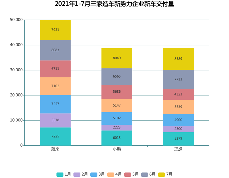 最近公布的(未計(jì)入Q2)7月份交付數(shù)據(jù)更是令人大跌眼鏡:蔚來直接被理想、小鵬反超,三者的交付數(shù)據(jù)分別是7,931輛、8,589輛、8,040輛。