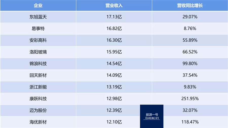 今年上半年中國光伏上市公司A股的財報已經出爐,總計2900多億營收、300余億凈利。其中,營收最高的前十大公司分別是隆基股份、通威股份、特變電工、天合光能、中環股份、正泰電器、晶澳科技、東方日升和陽光電源、三峽能源。營收同比增幅較高的有中環股份、愛旭股份、隆基股份、天合光能、福萊特、上機數控、錦浪科技、海優新材、固德威、奧特維、明冠新材等。