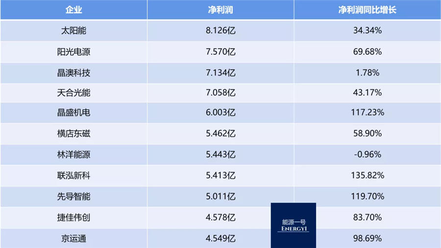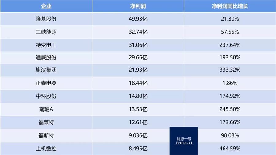 凈利來說,隆基股份、特變電工、通威股份、正泰電器、中環股份等繼續保持凈利高數值。凈利增長較快的為特變、通威、福斯特、上機數控、天合光能、晶盛機電、錦浪科技、固德威、海優新材等。