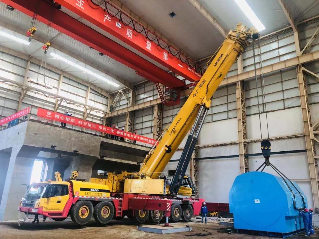國際首套100MW先進壓縮空氣儲能發電機定子順利吊裝就位