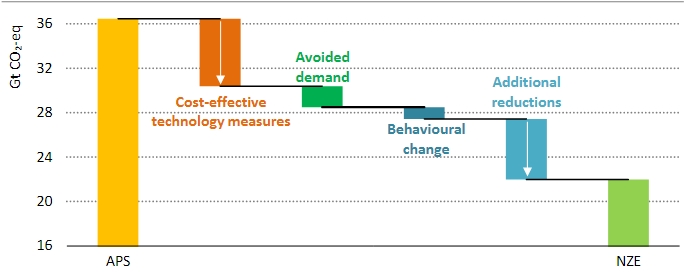已宣布的凈零承諾和更新的國家確定的貢獻已被完全納入國際能源署新的已宣布的承諾方案。該方案在2030年縮小了既定政策方案(STEPS)和2050年凈零排放方案(NZE)之間不到20%的差距,留下了12Gt二氧化碳的“雄心差距”,需要消除這一差距,使世界在2050年達到凈零排放。包括化石燃料甲烷的排放使差距增加到14 Gt二氧化碳當量。