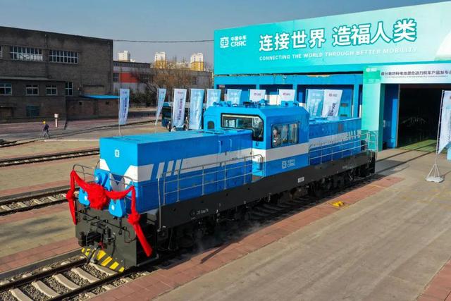 ▲這是我國自主研發的首臺氫燃料混合動力機車。新華社記者曹陽攝