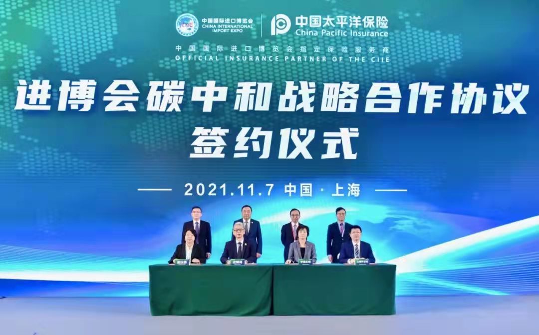 隨后論壇召開(kāi)了第四屆進(jìn)博會(huì)碳中和發(fā)布會(huì),中國(guó)太保產(chǎn)險(xiǎn)與中國(guó)國(guó)際進(jìn)口博覽局、國(guó)家會(huì)展中心(上海)有限責(zé)任公司、中國(guó)投資協(xié)會(huì)能源投資專(zhuān)業(yè)委員會(huì)、上海環(huán)境能源交易所股份有限公司等五方,進(jìn)行了戰(zhàn)略合作簽約及啟動(dòng)儀式。
