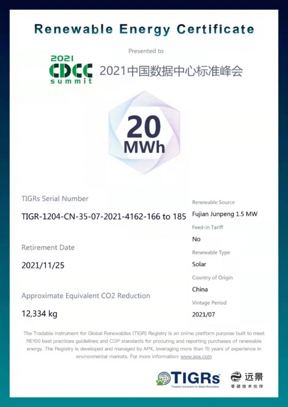 據(jù)第三方機(jī)構(gòu)碳足跡評(píng)估測(cè)算,2021數(shù)據(jù)中心標(biāo)準(zhǔn)峰會(huì)的各會(huì)場(chǎng),在本屆峰會(huì)期間二氧化碳排放當(dāng)量約為10.6噸,通過(guò)節(jié)能減排和采購(gòu)綠證的方式實(shí)現(xiàn)了數(shù)據(jù)中心行業(yè)首場(chǎng)“零碳會(huì)議”的落地。