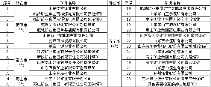 根據(jù)名單,此次“雙專雙查”明確的礦井有29處,其中濟(jì)寧市14處,菏澤市8處,泰安市5處,棗莊市2處;此外還包括其他需要檢查的沖擊地壓礦井。