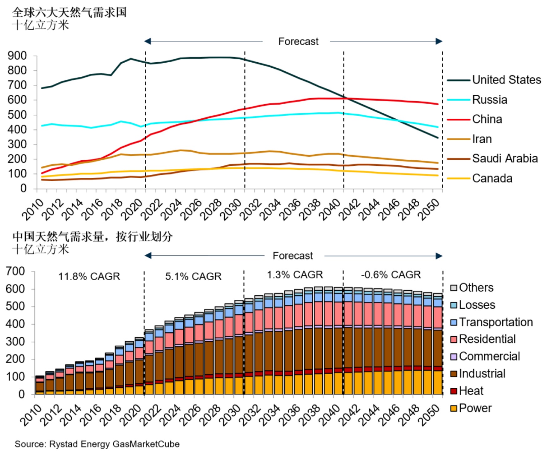 預計本十年中國的天然氣需求將以5.1%的年均復合增長率穩步增長,到2030年達到5360億立方米。中國有望在2020年代中期超過俄羅斯,成為全球第二大天然氣消費國。