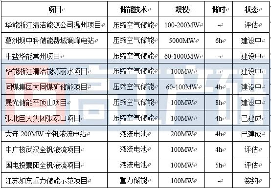 國內主要長時儲能示范項目(部分)