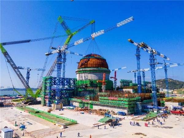 漳州“華龍一號”工程成功實踐“開頂法”施工,1號機組穹頂吊裝提前完成,首創鋼襯里全模塊化及建安一體化施工技術,在提前引入設備的前提下,開創單臺機組自開工至內穹頂吊裝24.5個月最短工期紀錄,創造了全球三代核電機組建造領先業績;