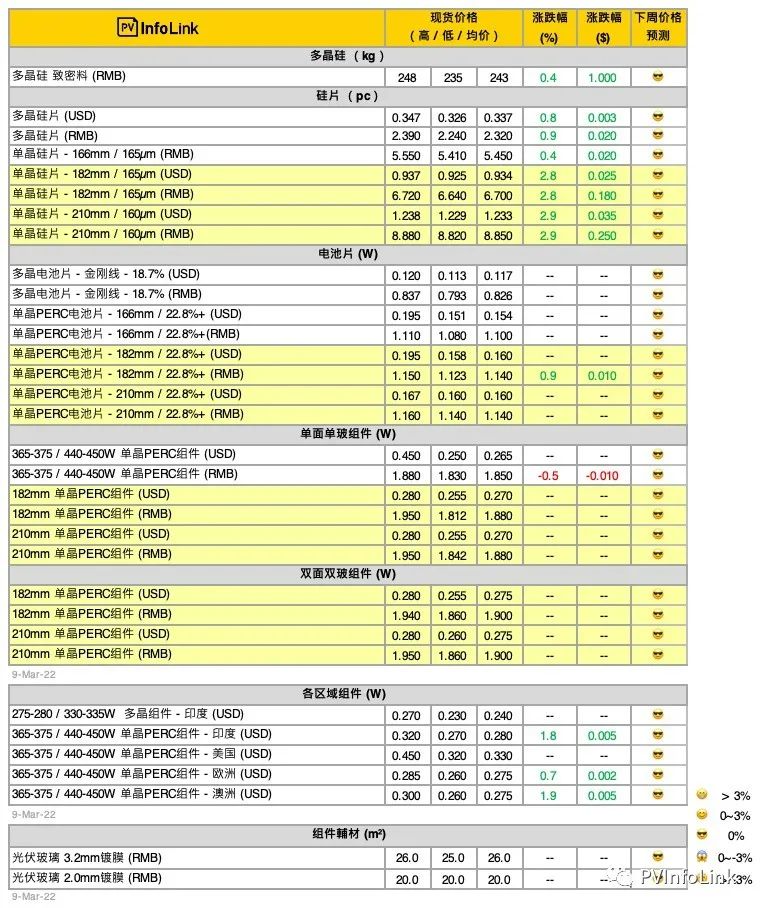 3月9日,PVInfoLink發布光伏產業鏈最新周價格匯總,上游硅料、硅片環節價格再次上漲。