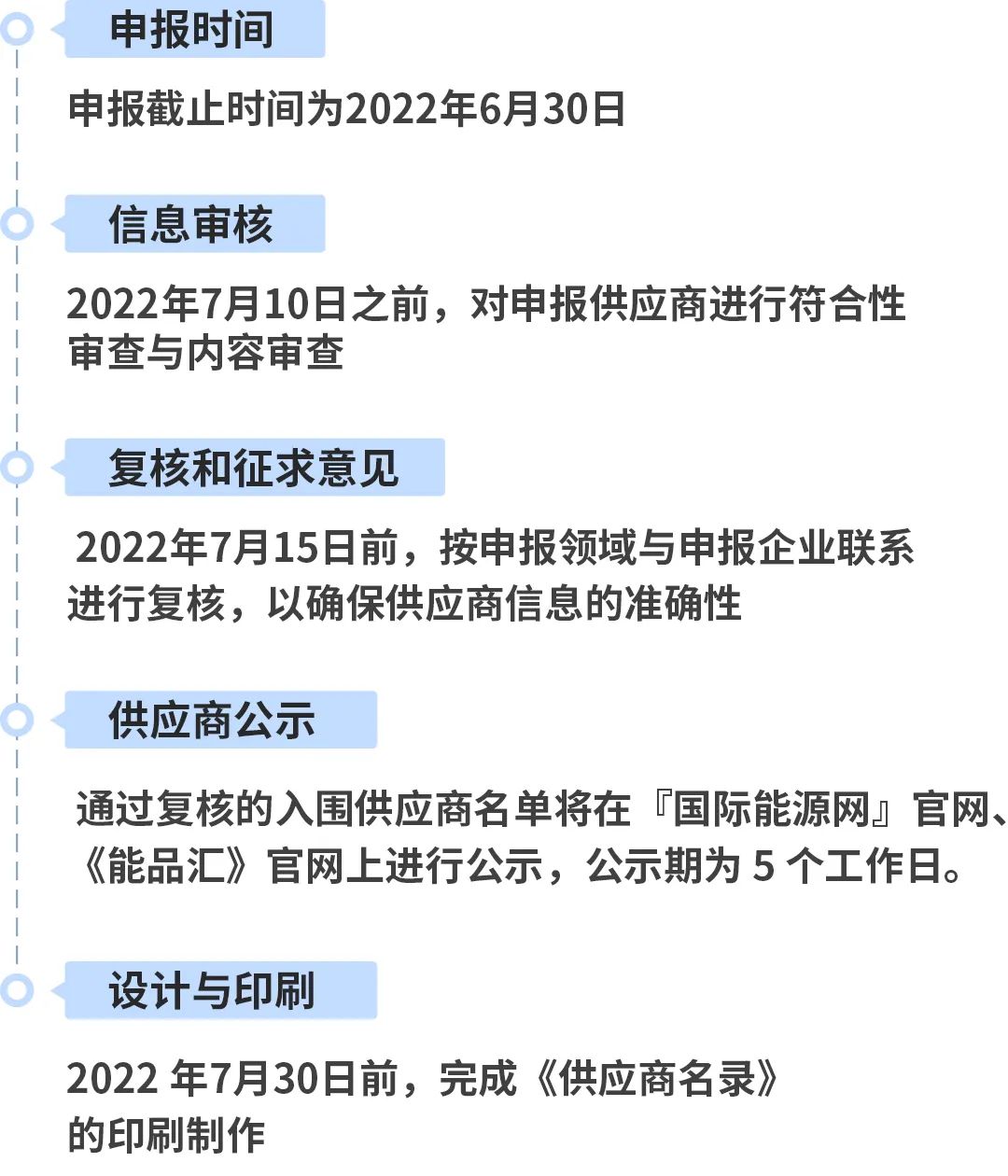 本次征集活動已于5月5日正式啟動,《供應商名錄》將實施供應商篩選計劃,對各報名單位報送的資料進行遴選、評審,堅持公正、公平、公開評審原則,完成供應商收錄。屆時供應商將在《能品匯》官網進行全年展播,并且收錄于《全國風電行業供應商名錄(2022版)》。《供應商名錄》入編的企業,將優先作為電商平臺詢價、采購的對象。