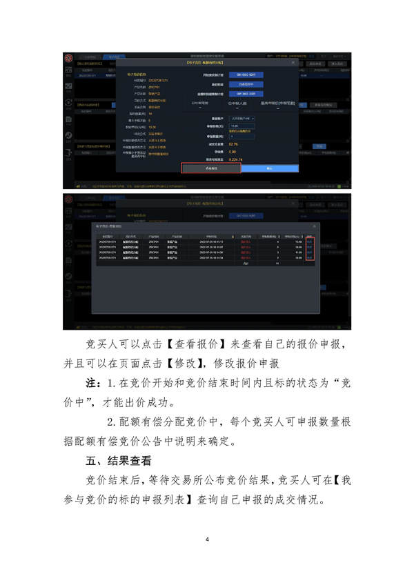 競買人在競價時間內可進行多次申報,總申報量為各次申報的總量,總申報量不得超過競買人允許的最大申報數量。競價申報單允許向上修改報價和數量,不允許撤銷、向下修改報價或數量。