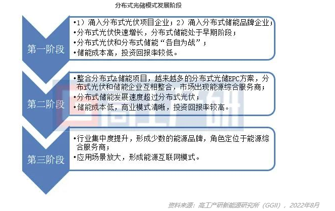 分布式光儲模式將經(jīng)歷三個階段。當前,分布式光儲模式正處于規(guī)模化發(fā)展前期。