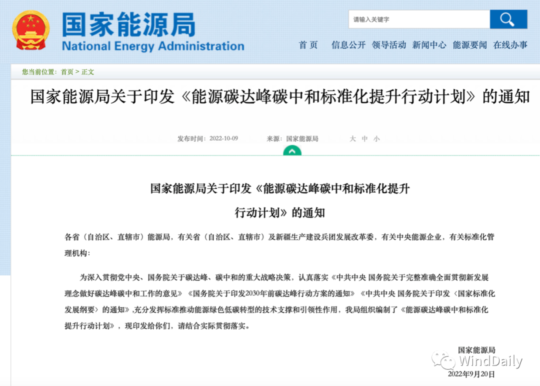 重磅!國家能源局發布《能源碳達峰碳中和標準化提升行動計劃》!