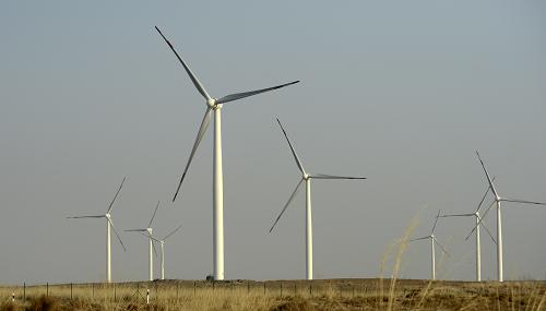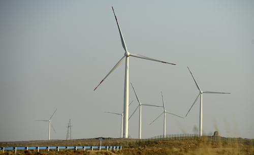 寧夏吳忠市紅寺堡區一處風電場(2月10日攝)。新華社記者王鵬攝