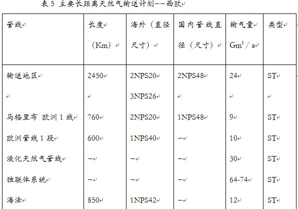 關(guān)于從歐洲輸氣考慮了兩種方案:一種是建立管線輸送系統(tǒng);另一種是建立液化天然氣管線。