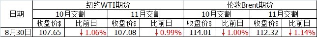 受外匯市場(chǎng)美元匯率上升的影響,以美元交易的國(guó)際油價(jià)給人以較高的感覺,誘發(fā)賣單。美國(guó)商務(wù)部公布的7月個(gè)人消費(fèi)支出比上一月增加0.1%,低于路透社調(diào)查的0.3%,這也打壓了油價(jià)。