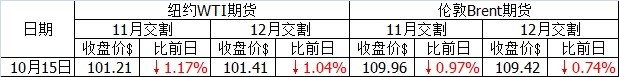 當日美國參議院民主共和兩黨就提高債務上限和政府重新開門事宜舉行會談,但是美國總統發言人稱目前離達成一致還很遠。另外,有報道稱參議院的會談被中斷,這使得美國股價下跌,原油價格也連帶下跌。