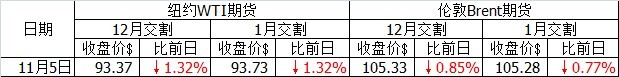 11月5日國際油價在4日短暫止跌后繼續下探,紐約WTI價格更是創下了6月份以來的新低。11月6日美國能源信息署將公布石油庫存周報。路透社以10名分析師為對象的調查預測,截至11月1日美國原油庫存比前一周增加160萬桶。如果該預測正確,那么原油庫存將連續7周增加,并預示需求放緩的長期化。美國俄克拉荷馬州庫欣中心截至10月25日庫存也大幅增加200萬桶,是2012年12月以來的最大增量。