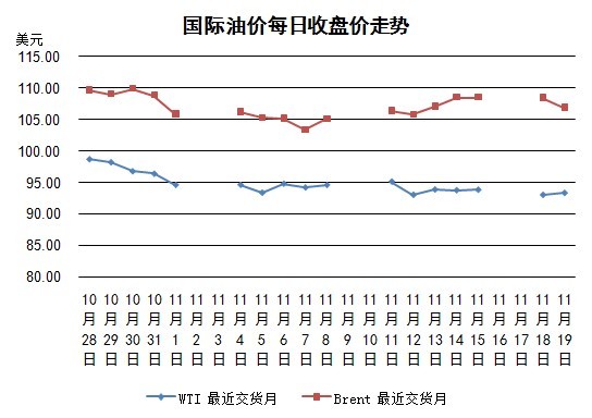 當(dāng)日紐約WTI油價(jià)微漲。道達(dá)爾在比利時(shí)安特衛(wèi)普的煉油廠發(fā)生火災(zāi),該煉油廠為歐洲第二大煉油廠,該消息推升油價(jià)上行。11月20日新一輪伊朗核問題談判將開始,另外美國石油庫存周報(bào)即將公布,因此市場觀望情緒濃厚,交易量有限。根據(jù)路透社調(diào)查預(yù)測,截至15日的美國原油庫存比前一周增加90萬桶,汽油庫存減少30萬桶,餾分油減少60萬桶。