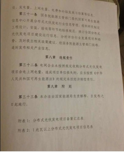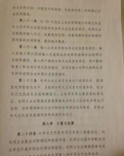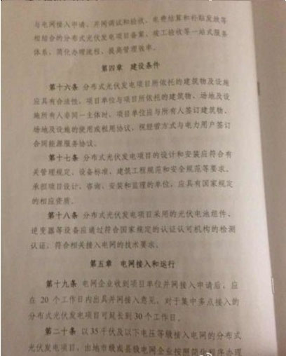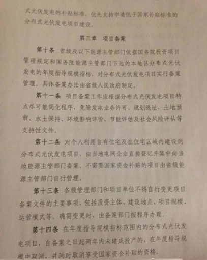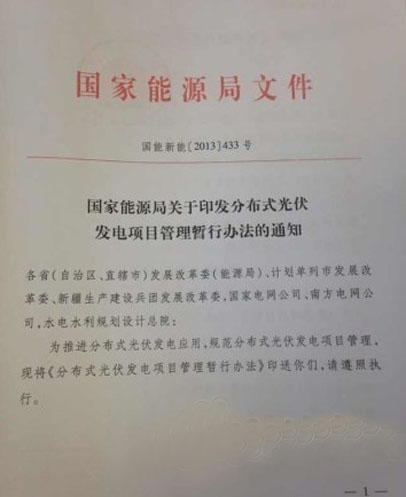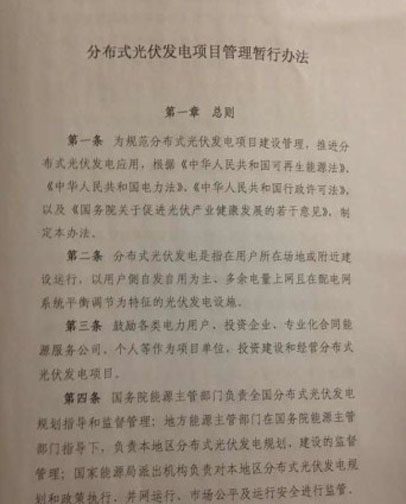 今天上午,記者從英利公司獲悉,國家能源局已于11月18日發(fā)布《關(guān)于分布式光伏發(fā)電項(xiàng)目管理暫行辦法的通知》,涉及總則、規(guī)模管理、項(xiàng)目備案、建設(shè)條件、電網(wǎng)接入和運(yùn)行、計(jì)量與結(jié)算、產(chǎn)業(yè)信息監(jiān)測(cè)及違規(guī)責(zé)任等細(xì)則。業(yè)內(nèi)盼望已久的分布式又一利好政策正式落地。