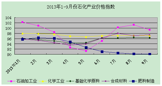 前三季度,國內(nèi)化工行業(yè)生產(chǎn)者價格指數(shù)累計為97.3,化工產(chǎn)品市場價格同比回落,其中基礎(chǔ)化學(xué)原料、合成材料和化肥行業(yè)累計價格指數(shù)分別為95.6、95.7和93.1。從價格指數(shù)走勢看,9月份,石油加工業(yè)價格水平略低于上年同期;化學(xué)工業(yè)價格指數(shù)97.2,與上月持平。從環(huán)比看,重點監(jiān)測的化工產(chǎn)品中,10月份價格上升的無機化工原料、有機化工原料產(chǎn)品比例分別為71%和70%;合成樹脂約60%價格下跌;天然橡膠及合成橡膠整體環(huán)比上漲。需要指出的是,9月份,化肥行業(yè)價格指數(shù)已跌至90.1;10月份,尿素、二銨、氯化鉀等主要化肥品種價格繼續(xù)下跌,化肥行業(yè)生產(chǎn)經(jīng)營形勢嚴(yán)峻。