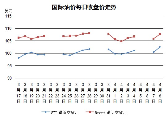 8日國際油價(jià)大漲,WTI5月期貨價(jià)格約為一個(gè)月以來最高值。烏克蘭東部頓涅茨克州、哈爾科夫州和盧甘斯克州數(shù)千名親俄民眾6日舉行抗議集會,頓涅茨克和哈爾科夫的一些集會者占領(lǐng)了州政府大樓,升起俄羅斯國旗,宣稱“獨(dú)立”成立“共和國”。俄羅斯外長拉夫羅夫7日警告烏克蘭當(dāng)局不要在烏東部和南部地區(qū)對親俄示威者使用武力。拉夫羅夫表示,在烏克蘭東部地區(qū)動用武力可能會引發(fā)“內(nèi)戰(zhàn)”。西方擔(dān)心俄羅斯可能會對烏克蘭進(jìn)行新的武力干涉。