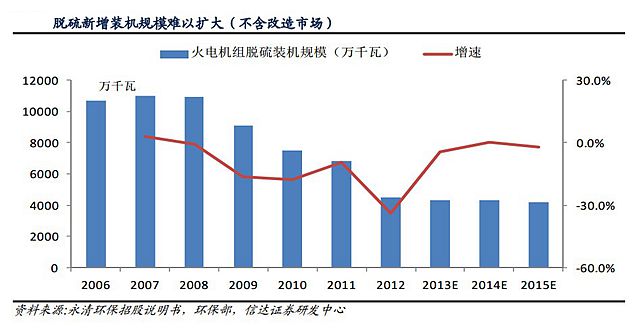 2012年底已投運火電廠煙氣脫硝機組總容量僅占當時全國現役火電機組容量的28%,而截至2013年底,中國最大的發電企業華能集團脫硝機組占煤電機組比重也僅為65%。