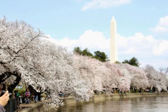 華盛頓的櫻花始于1912年東京贈送的櫻花樹苗,波托馬克河附近岸邊約有3800株。根據美國國家公園管理局的開花數據,七成以上花苞開放的盛開期較開始觀測的上世紀20年代提前了約5天。