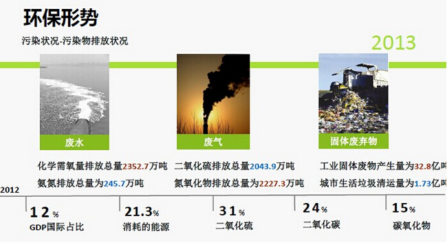 從2012年的環境調查報告數據得知,我國使用了世界12%——15%的GDP儲蓄,但是卻消耗了21%的能源,排放了占全世界排放量31%的二氧化硫、24%的二氧化碳以及15%的碳氧化物。換句話說,我國目前仍是以一種低質、粗放、消耗性的方式來促使GDP的增長,用能源消耗和污染大量排放來促進財富的創造。