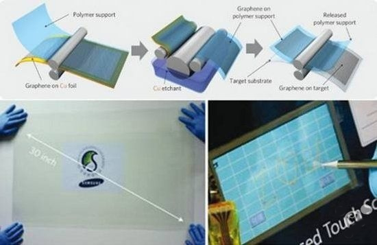 由于石墨烯柔韌、透明且可以導電的特性,相比傳統(tǒng)玻璃,它更適合作為屏幕面板。包括美國德克薩斯大學、韓國成均館大學均在早期進入此領域進行研究,并取得了一定的成功;而科技公司方面,三星在2011年已經研發(fā)出40英寸的石墨烯觸摸屏面板、索尼則在2012年進一步將其柔性化。