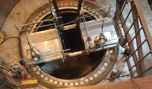 TVA的工作人員觀察水流入瓦茨巴2#機組打開的反應堆壓力容器。4月開始預運行試驗 (Photo credit: TVA)