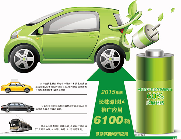 按照“政府主導、市場運作、突出重點”的原則,鼓勵和支持有條件的城市推廣應用新能源汽車。長株潭地區作為國家批復的新能源汽車推廣應用示范區域,在2013年至2015年需推廣應用6100輛新能源汽車,同時鼓勵其他城市積極推廣應用。
