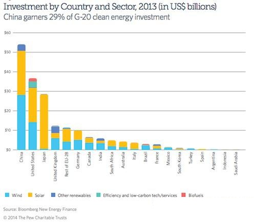 中國現在已經成為世界上最大的清潔能源投資國,2012年中國在新能源開發(fā)領域投資680億美元,2013年投資540億美元。從2005年至2013年,中國的非化石能源供應量增加了2倍多,同時中國的單位GDP二氧化碳濃度下降了28%,并且中國對煤炭能源的依賴程度也在下降。