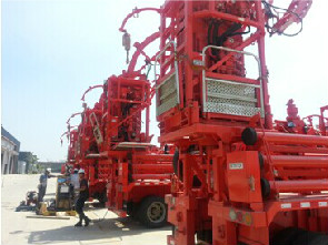 交流結束后,杰瑞市場部工作人員帶領中國能源網一行人員參觀了裝備制造車間,車間外停滿了各種各樣的石油裝備,有的正準備發給客戶。進入車間,所有人員都帶上了安全帽和防護眼鏡,在市場部的講解中一路參觀了壓裂車、混砂車、LNG設備組裝等車間,看到了工人們緊張忙碌的情景。