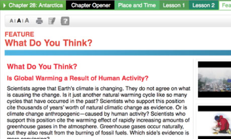 在提交的六年級課本修改稿中稱,科學家對全球變暖的誘因存在爭議。教材中寫道:“科學家同意地球氣候正在發(fā)生變化,但對變化原因存在分歧。”