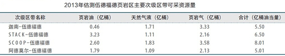 伍德福德頁巖區(qū)帶是2013年美國頁巖油生產(chǎn)的亮點(diǎn)之一,大批石油公司在該區(qū)帶頁巖油生產(chǎn)條件較好的幾個次級區(qū)帶(見表)上增加了鉆機(jī)數(shù)量,擴(kuò)大勘探開發(fā)規(guī)模,其中包括在俄克拉荷馬州中部伍德福德/梅勒梅克次級區(qū)帶作業(yè)的Newfield公司和阿德莫爾盆地伍德福德頁巖區(qū)作業(yè)的埃克森美孚公司,以及在阿納達(dá)科盆地伍德福德頁巖區(qū)作業(yè)的阿帕奇和切薩皮克公司等。