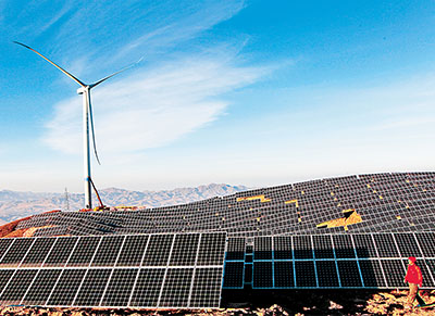 圖為河北省宣化縣中電投新能源基地光伏發(fā)電場(chǎng)。