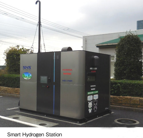 設置的智能氫氣站采用無需壓縮機(空氣壓縮機)的高壓水電解系統,將從高壓氫燃料罐到充填噴嘴的主要構成部件封裝為一體。據稱可比壓縮機方式的系統減少施工時間和占地面積。