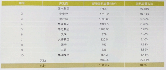 2013年中國風(fēng)電新增裝機(jī)排名前十的開發(fā)商統(tǒng)計(jì)表