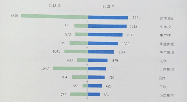 2012年 - 2013年中國新增裝機(jī)排名前十的開發(fā)商對比圖