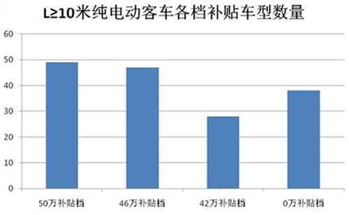 下一輪純電動客車將按照單位載質量能量消耗量(Ekg)補貼,如:同樣是車長(L)≥10,Ekg<0.3的車型可獲得50萬元的補貼,而0.4≤Ekg<0.5的車型則獲得42萬元的補貼,這意味著純電動客車單位載質量能量消耗量越低,補貼越高。